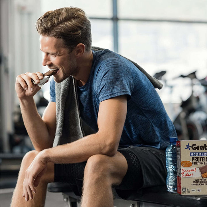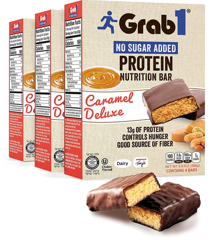 Grab1, Barre protéinée, Caramel Deluxe, Sans sucre ajouté, 4 barres