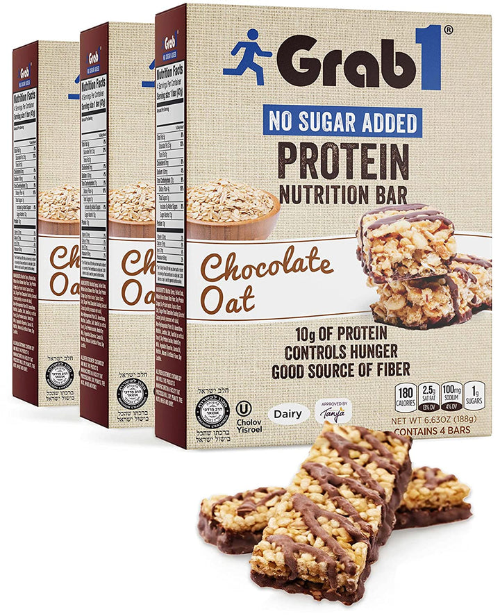 Grab1, Barre Protéinée, Chocolat Avoine Sans Sucre Ajouté, 4 barres
