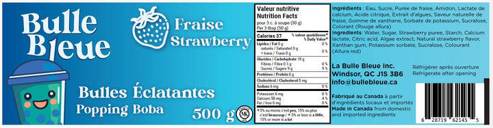 Bulle Bleue Popping Boba, Strawberry Flavour, 500g Container, Natural Strawberry Puree, Refrigerate After Opening