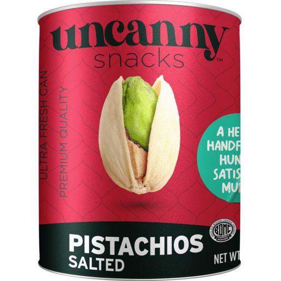 Uncanny Snacks Salted Pistachios - 50g Can | Sustainably Irresistible