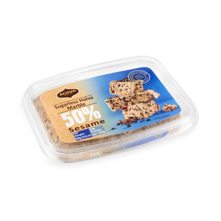 Indulge in the exquisite craftsmanship of Achva's Sugarless Marble Halva.