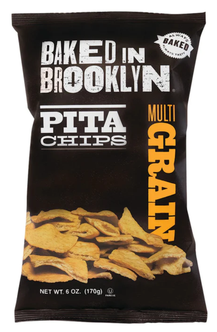 Wholesome Crunch: Indulge in the wholesome crunch of Baked in Brooklyn Multigrain Pita Chips, free from trans fat and added sugar.