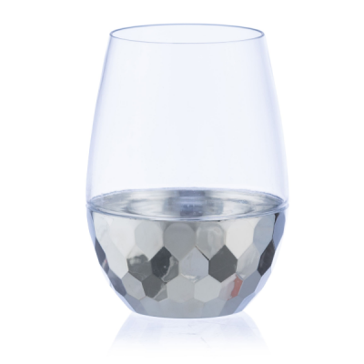 Decor 6 Silver Hammered Stemless Wine Goblets - 16 oz, Plastic & Disposable
