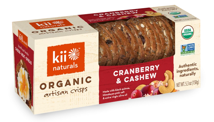 Delight in the classic combination of sweet and nutty flavors with Kii Naturals Organic Cranberry & Cashew Artisan Crisps. These gourmet crisps feature a delightful blend of organic dried cranberries and hearty cashews, creating a deliciously balanced flavor profile that’s perfect for any occasion. Crafted with non-GMO ingredients and 0 trans fat, these crisps offer a healthy and satisfying snack option. Whether paired with soft-ripened cheeses or a robust aged cheddar, these artisan crisps bring sophistication and natural goodness to your snack table or charcuterie board.