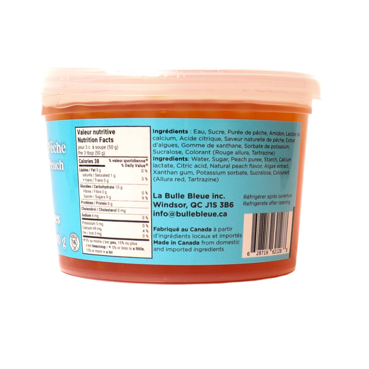 Bulle Bleue Peach Popping Boba, 500g Container, Made with Natural Peach Flavour and Fruit Puree, Refrigerate After Opening