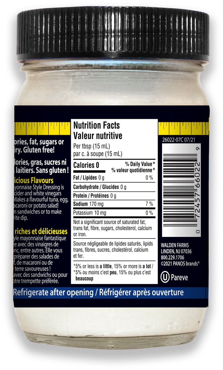 A house favorite, Walden Farms Amazin’ Mayo is as classic as can be in flavor and light whipped texture while being free from calories, carbs and dairy. Walden Farms Amazin' Mayo is made with egg whites, lemon juice, white vinegar and other concentrated natural flavors. Don’t deny yourself the satisfying taste of mayonnaise, enjoy delicious sandwiches, salads and appetizers. Switch and save hundreds, even thousands of calories. Spread it on bread for sandwiches and kick back knowing you’re enjoying real, quality ingredients like organic white vinegar. Consider Walden Farms Amazin’ Mayo your packed lunch BFF.